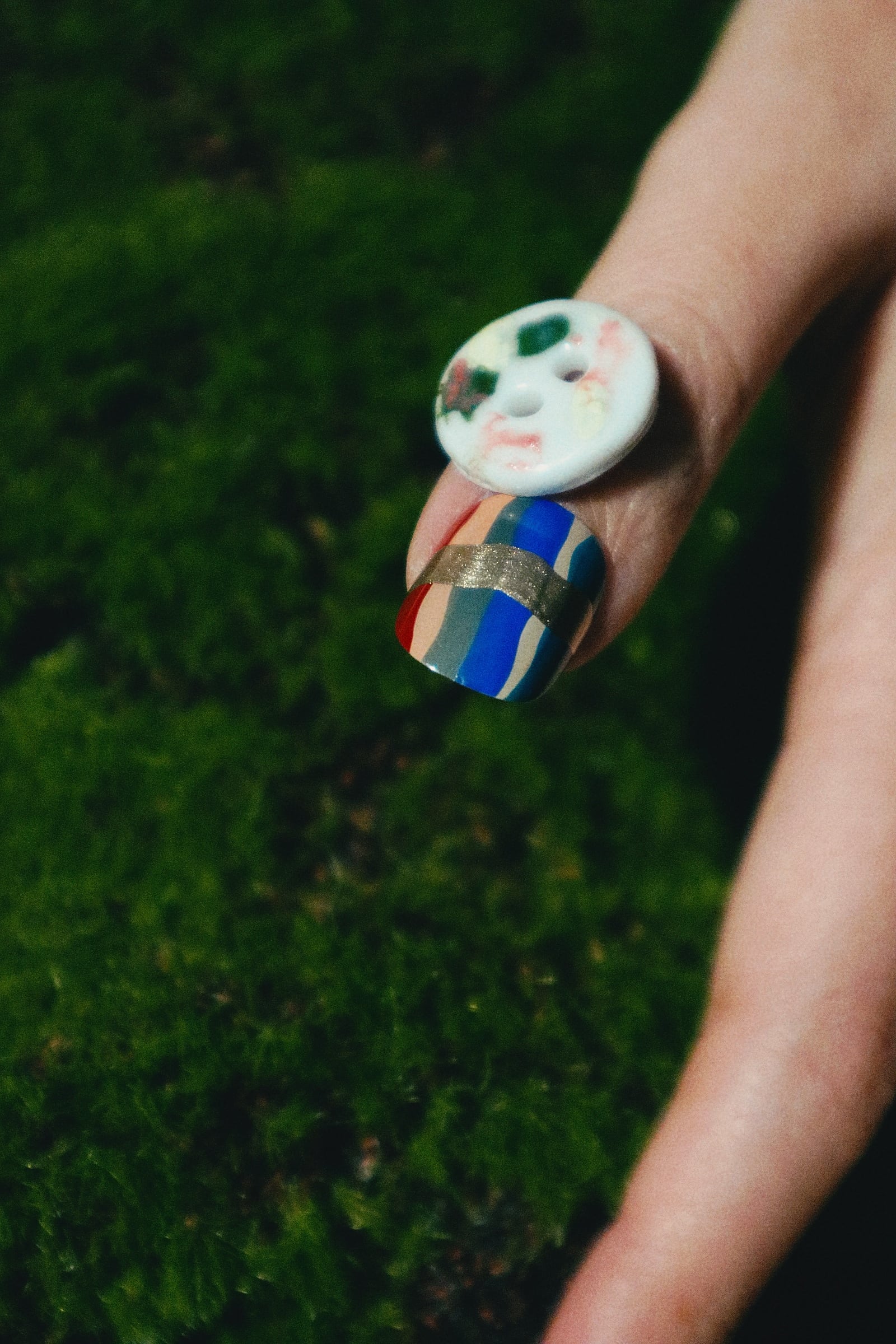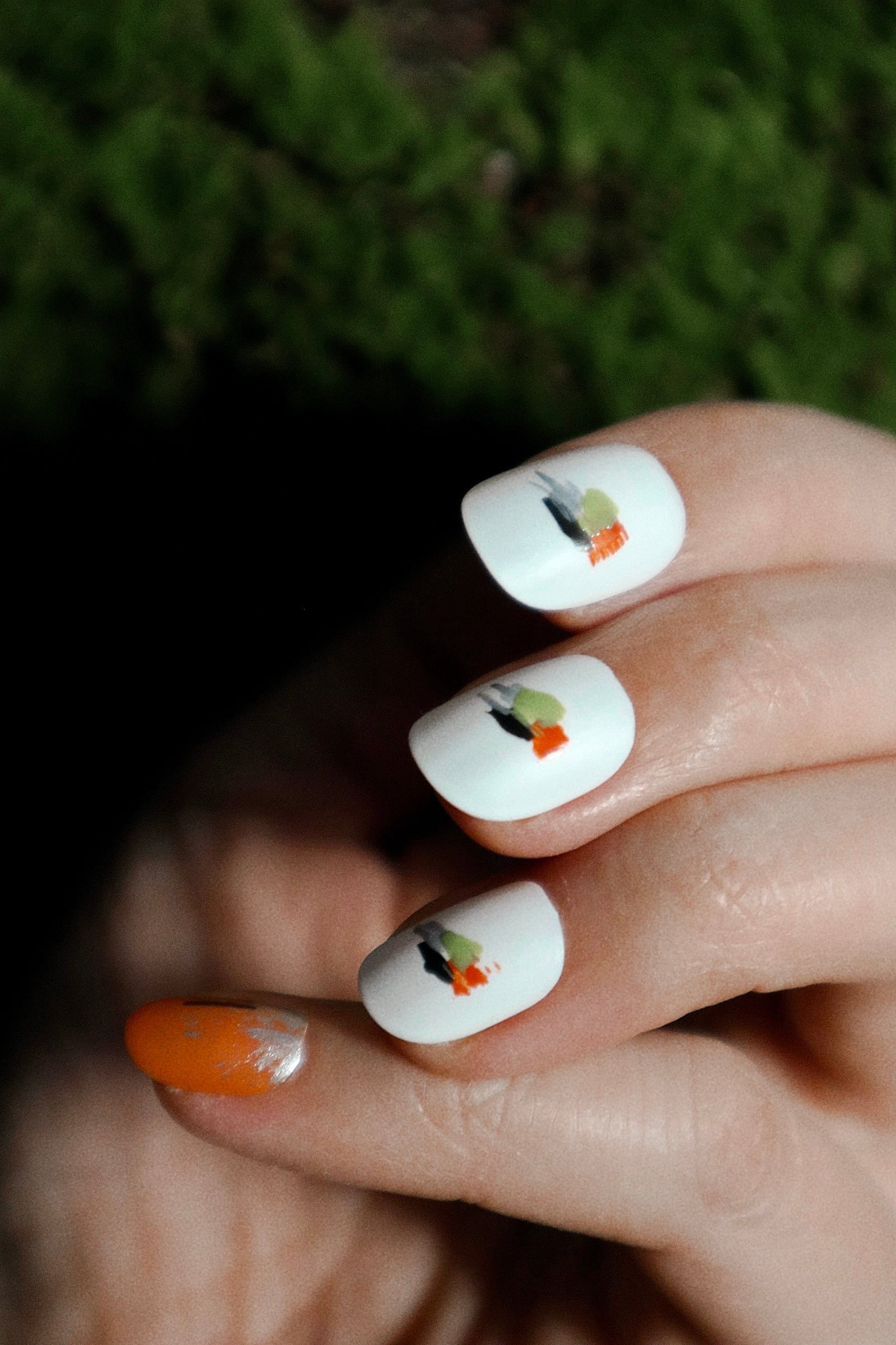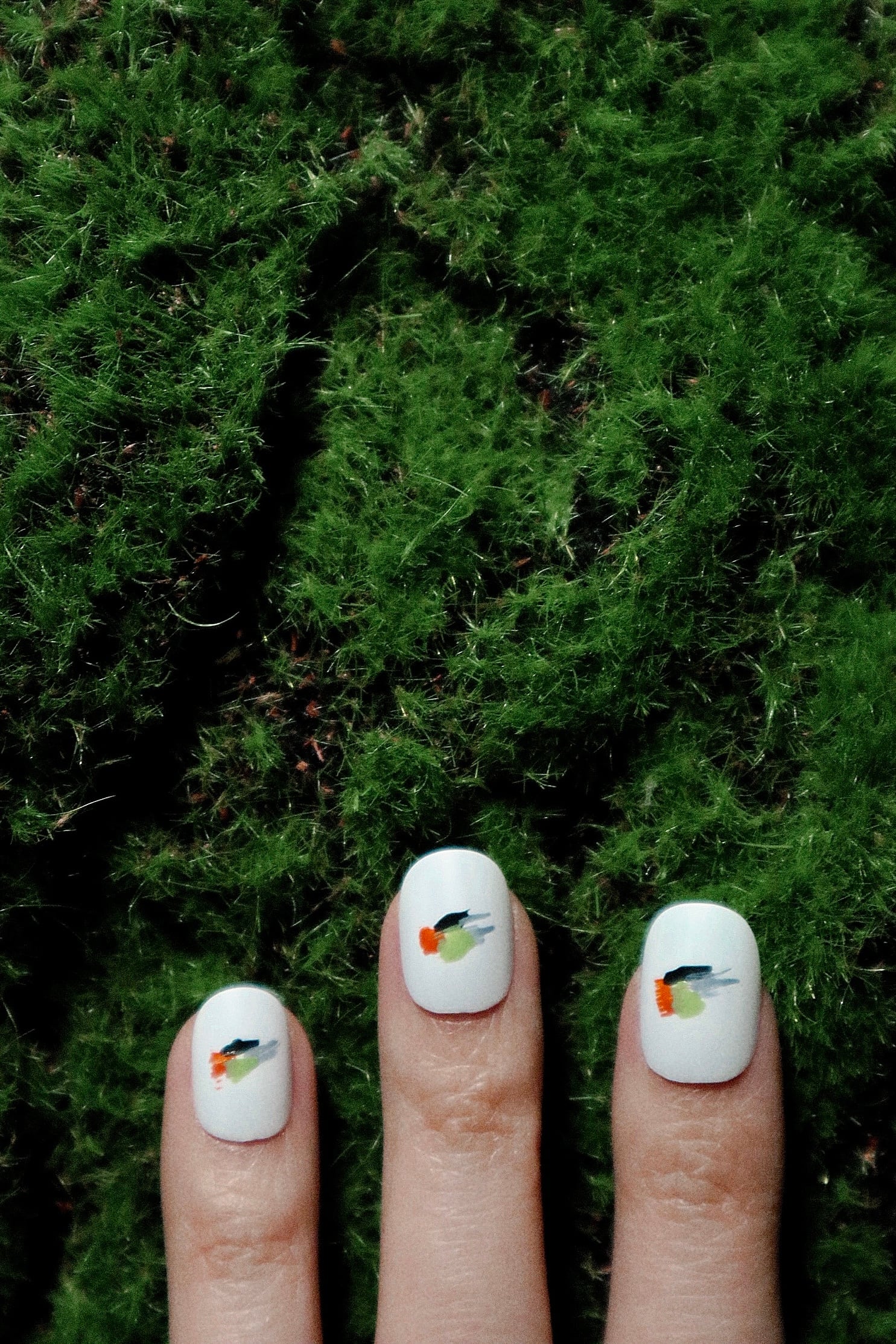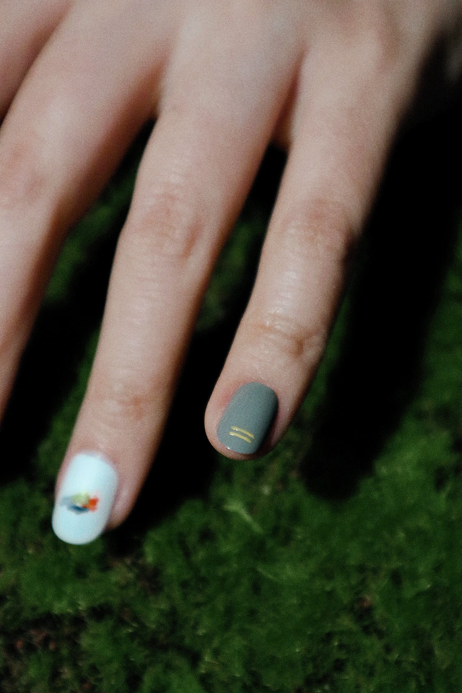 それと対照的に、カラフルな親指の爪は